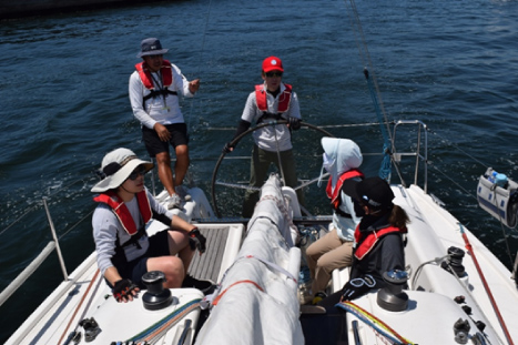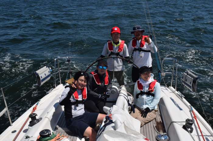 1日のセーリング実習が無事終わり満足げな受講生の皆さん